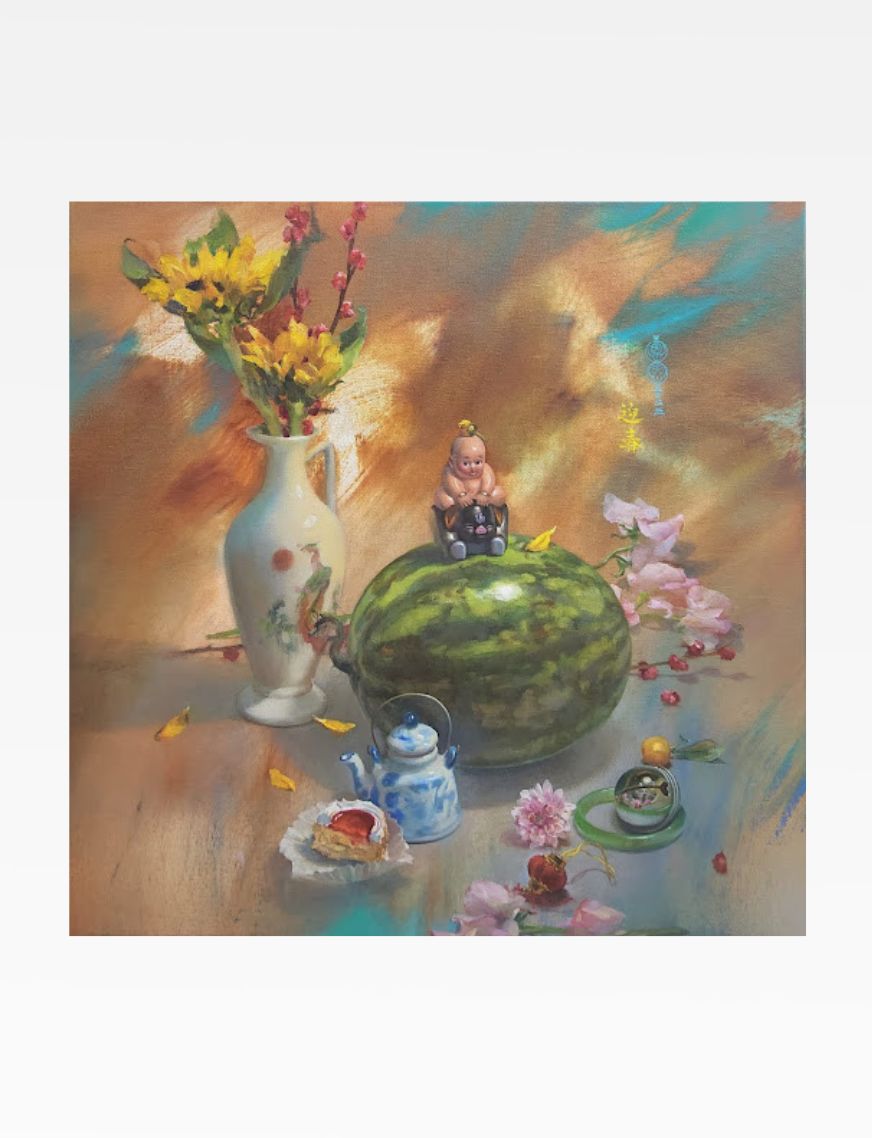 Chen’s forte in still life painting is evident in the artwork itself. Artists usually have absolute control over the subject matter in a still life painting. This usually reflects the artist’s persistence to details and finer things in life. Chen’s still life artworks are such tribute to such intricacy. Chen’s artistic foundation is firmly grounded as he had received training in Nanyang Academy of Fine Arts, and a specialisation in Western oil painting. His works have been recognised and awarded the first prize for Representation Category at the 22nd UOB Painting of the Year in 2003. Before that, Chen’s work received Highly Commended Painting award at the 21st UOB Painting of the Year in 2002. He also received Della Butcher Merit Award in 2000.