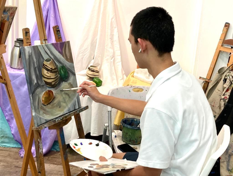 Student is doing Still Life Acrylic Painting