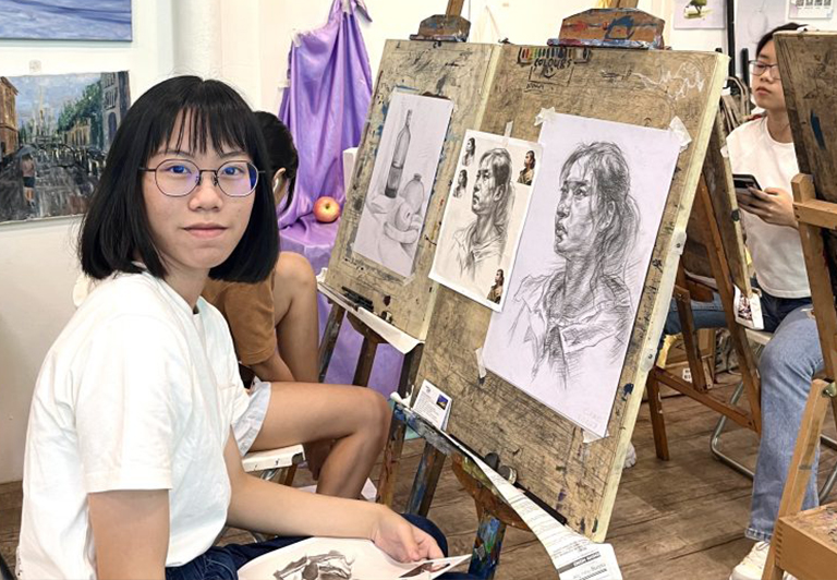 Students who choose Drawing and Sketching with a painting medium is able to develop an intermediate or higher competency level, and would be able to manage harder subjects such as: advanced landscape drawing or painting, portrait and plaster casts.