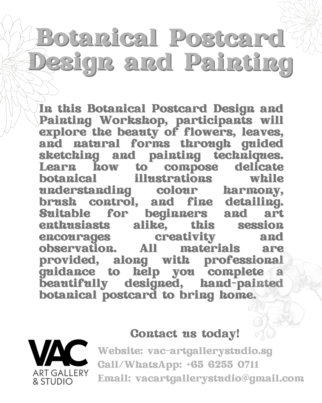 All art materials are fully provided, making this workshop suitable for beginners and art lovers alike. Enjoy a relaxing, creative journey that connects art, nature, and the spirit of Singapore.