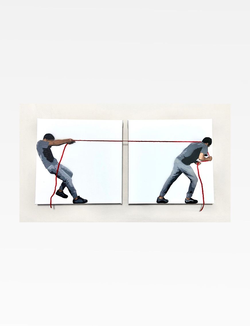 Medium : Spray paint and red wool on canvas